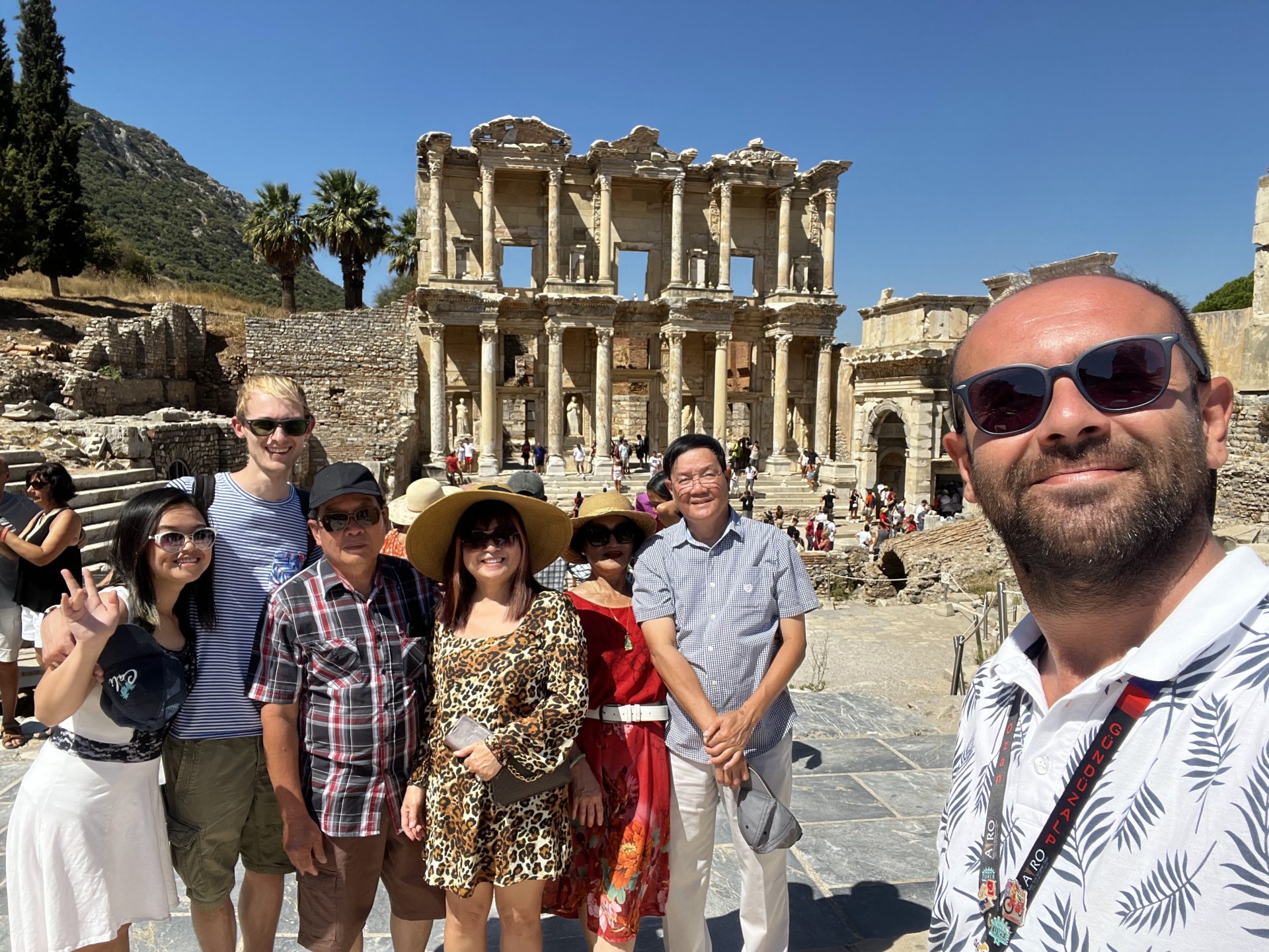 He studied Travel Management and Tourism Guidance. He has a masters degree in Tourism Management and he is doing his PhD in Tourism Management. He has written 2 chapters for 2 books and 3 scientific articles. He lectured face to face and online at universities about professional turist guidance and creating a career in tourism. Since 2018 he is freelance nationwide tour guide . He is a certified expert about 7 churches, Biblical tours and also every aspect of Ephesus. In his tours, he generally aims to experience the tour exactly as it is. He is a very experienced tour guide, who loves his job, prefers to be friends with the guests, and answers questions seriously and sincerely. He has a strong grasp of what today’s religious tourists are looking for. He is known for creating educational tours. You don’t just do an excursion with him. You can also experience local flavors, culture, music and lifestyles.